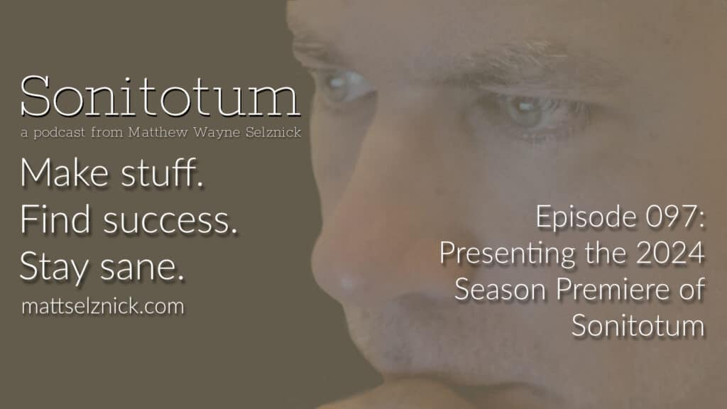 Sonitotum with Matthew Wayne Selznick is a podcast about making things (mostly writing), finding success as we each define it for ourselves, and staying healthy and sane in the process.